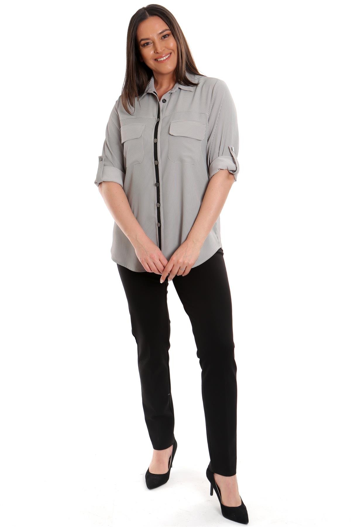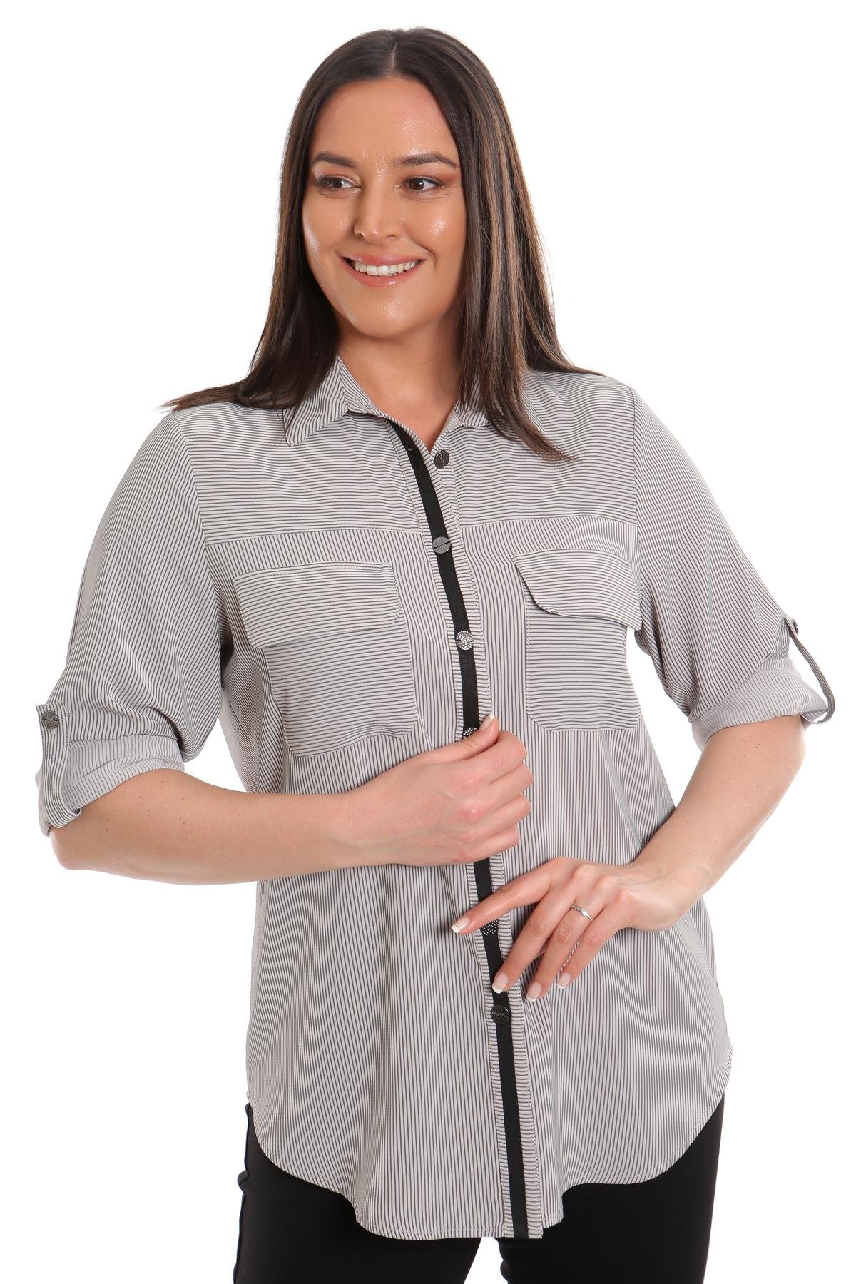 Büyük Beden Bej Patı Şeritli Çizgili Gömlek (10091)