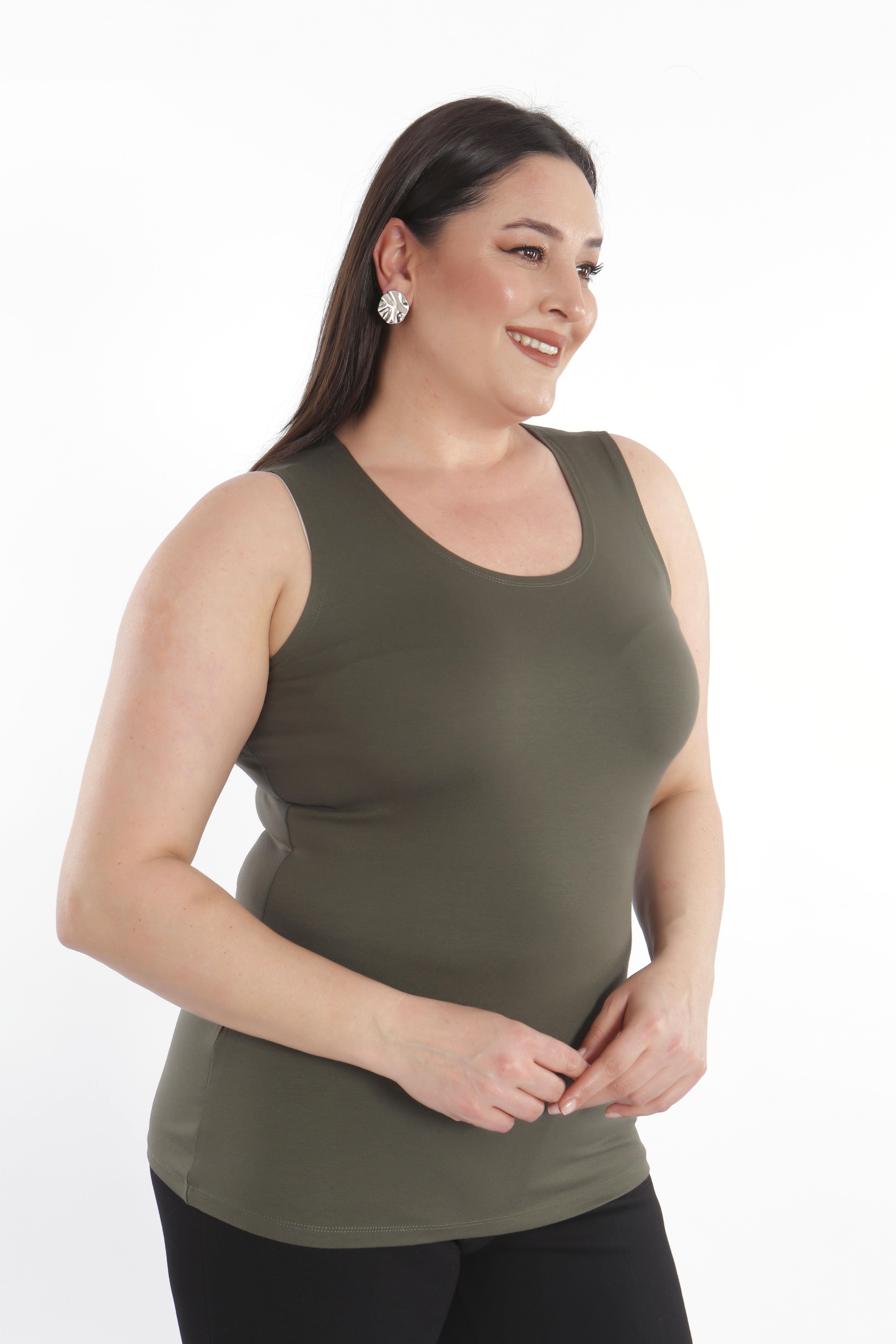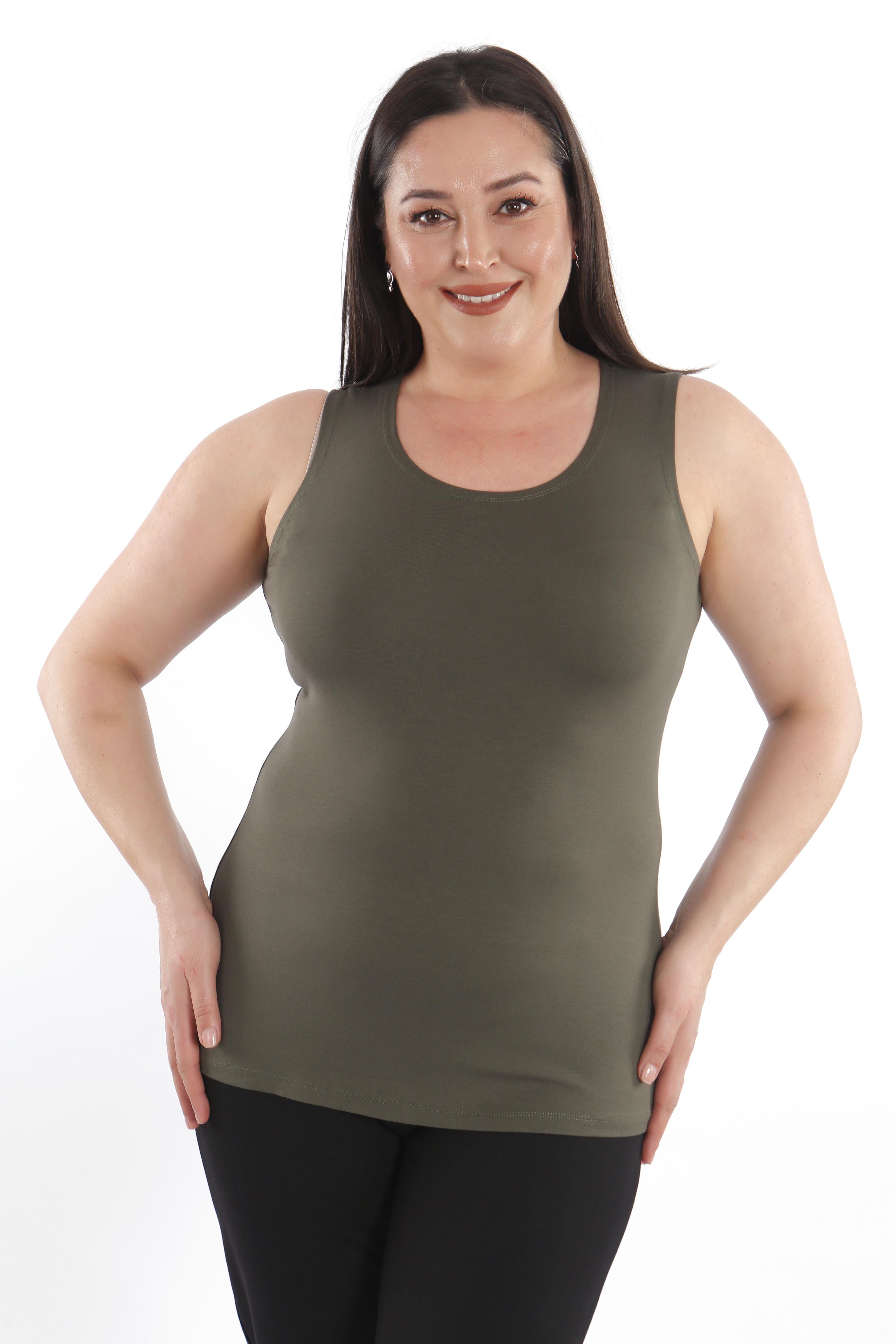 Büyük beden Geniş Askılı Basic Haki Bluz (T-shirt)