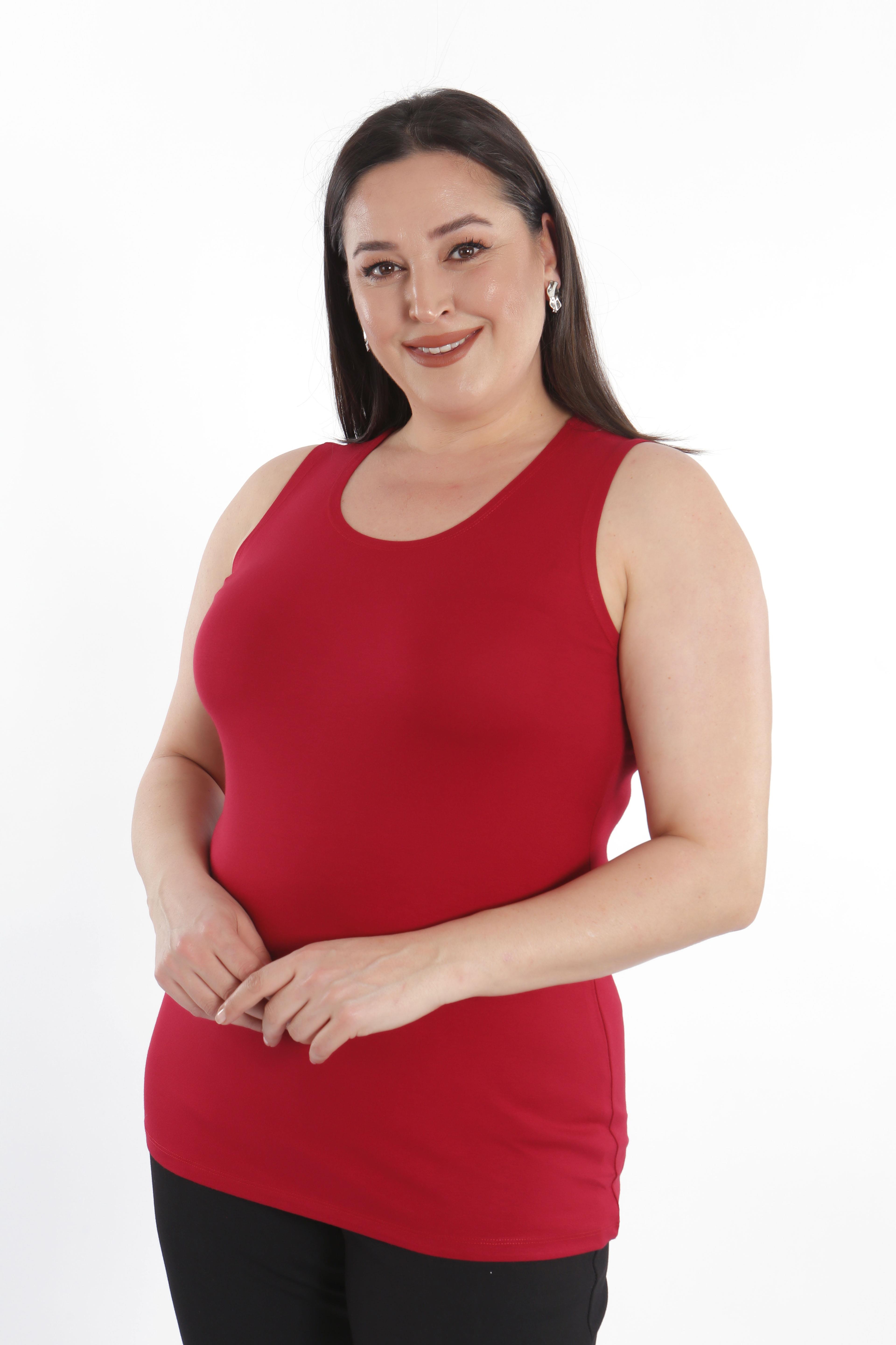 Büyük beden Geniş Askılı Basic Kırmızı Bluz (T-shirt) (201558)
