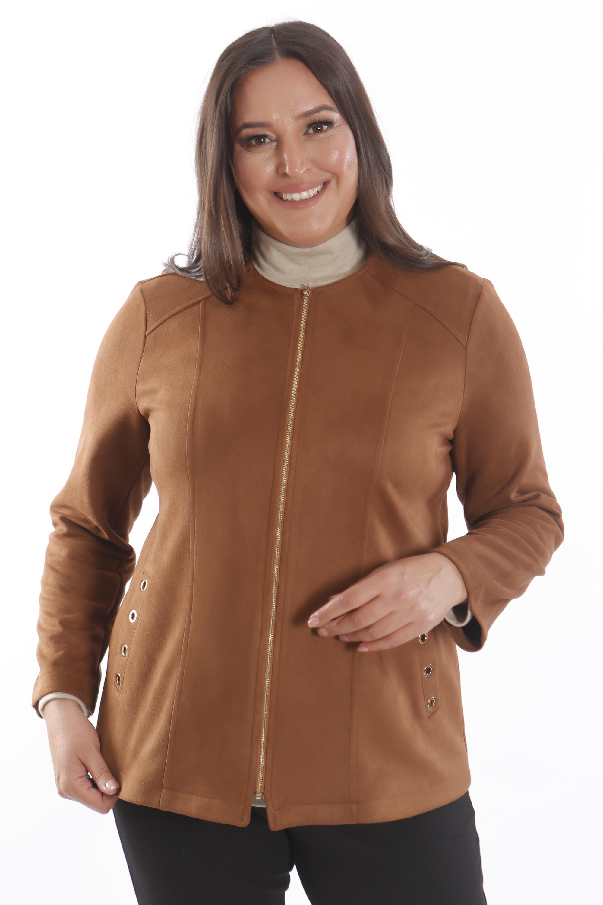 Büyük Beden Süet Önü Robalı Cebi Kuş Gözü Çakımlı Kahverengi Ceket