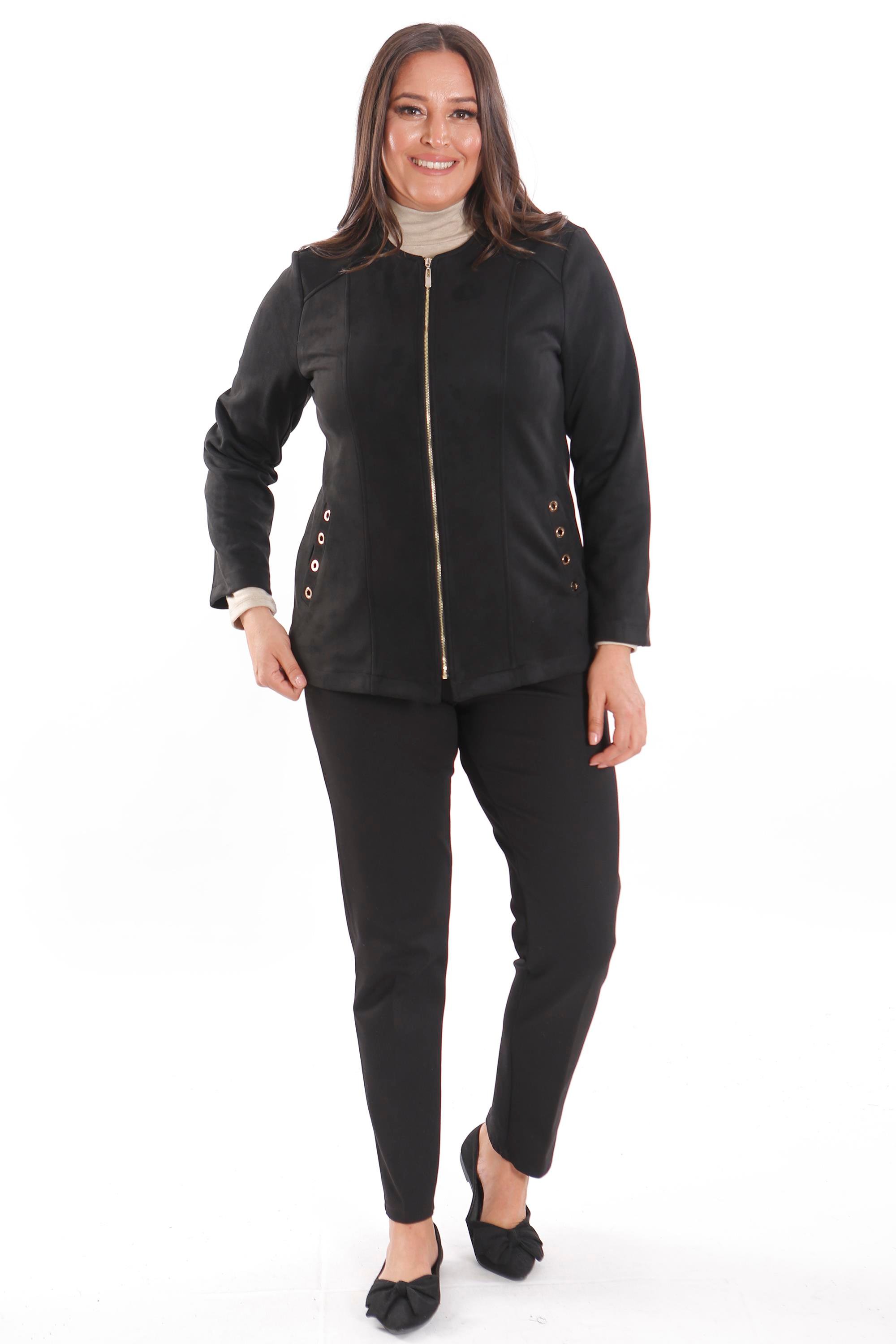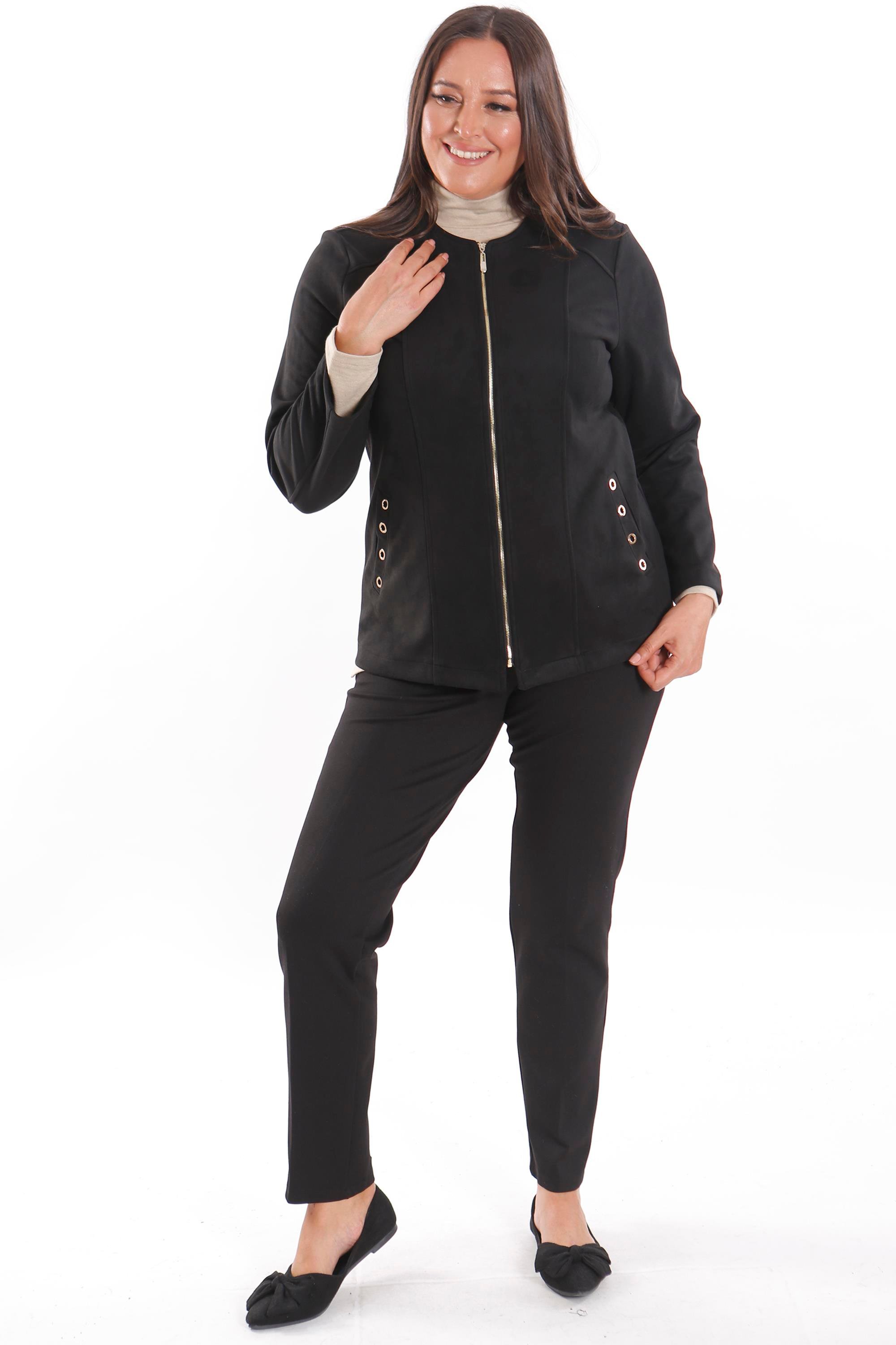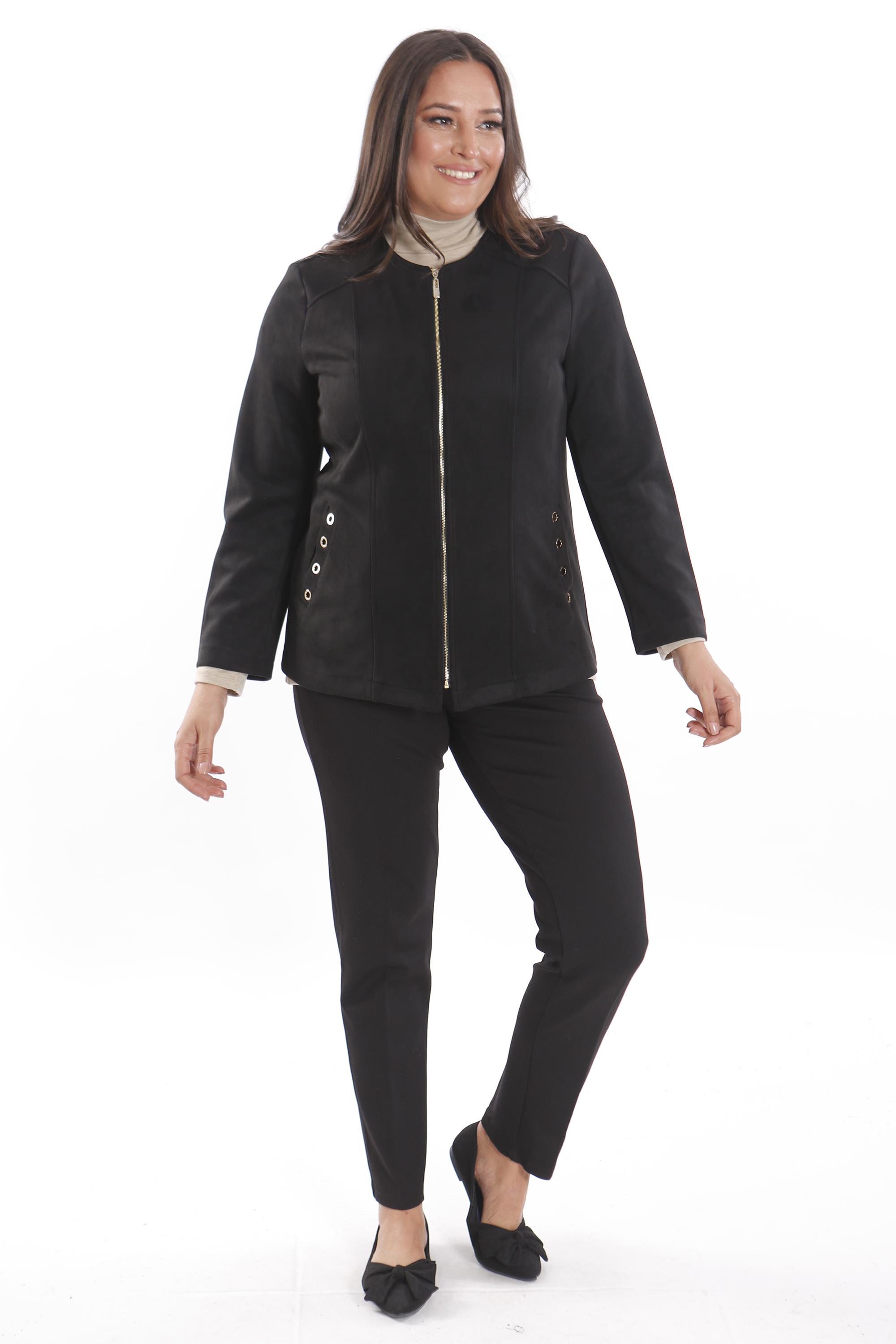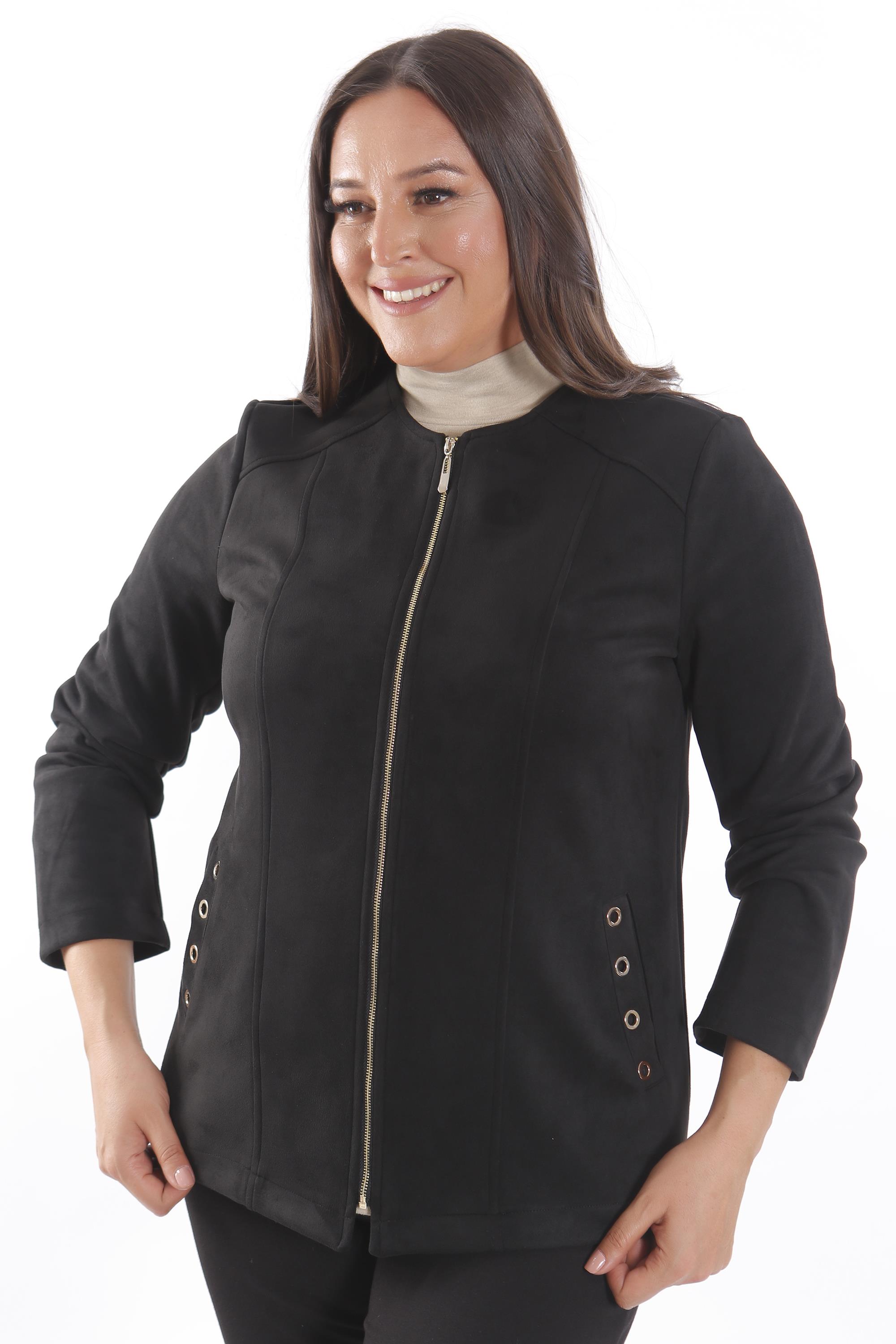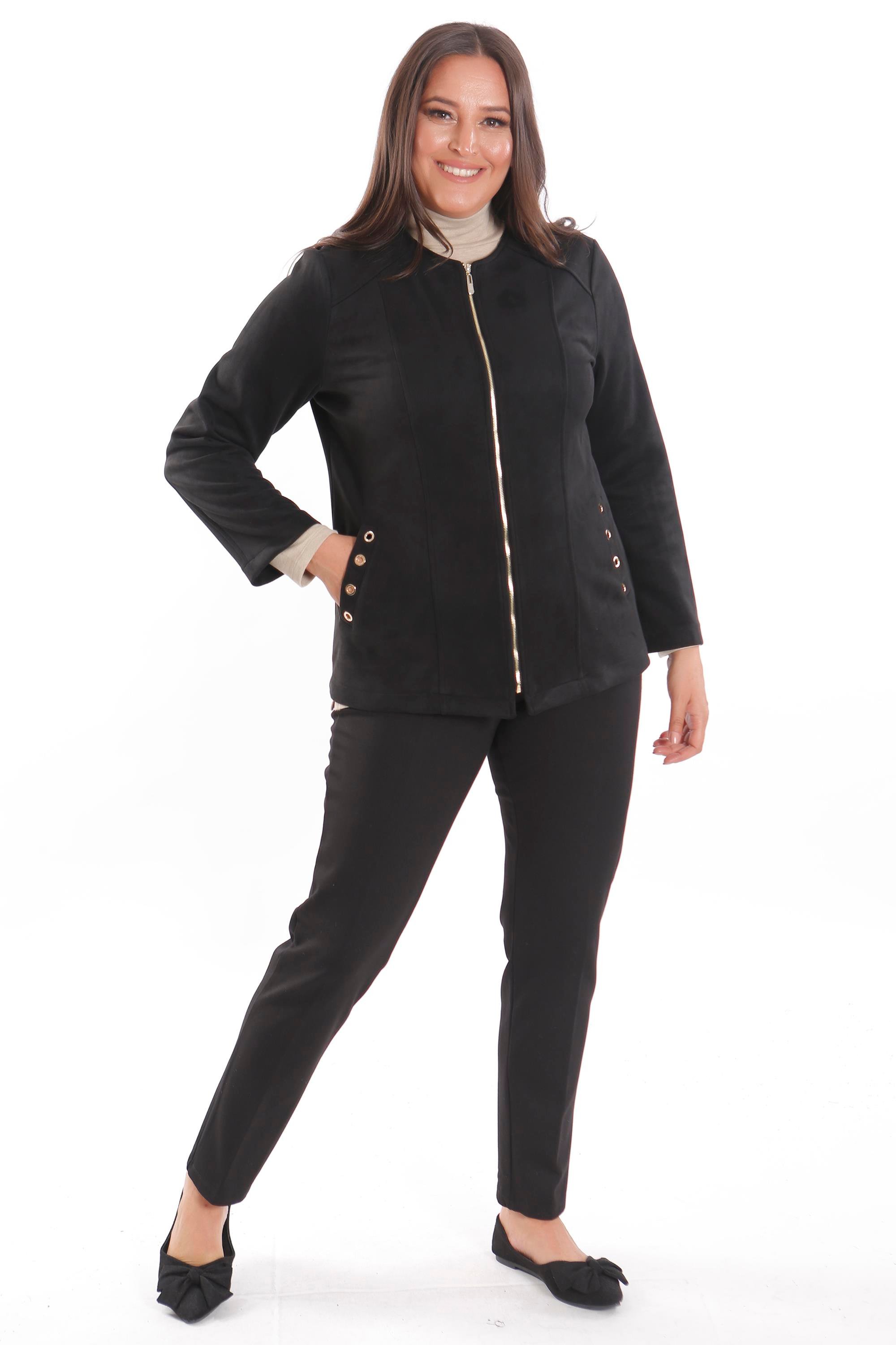 Büyük Beden Süet Önü Robalı Cebi Kuş Gözü Çakımlı Siyah Ceket