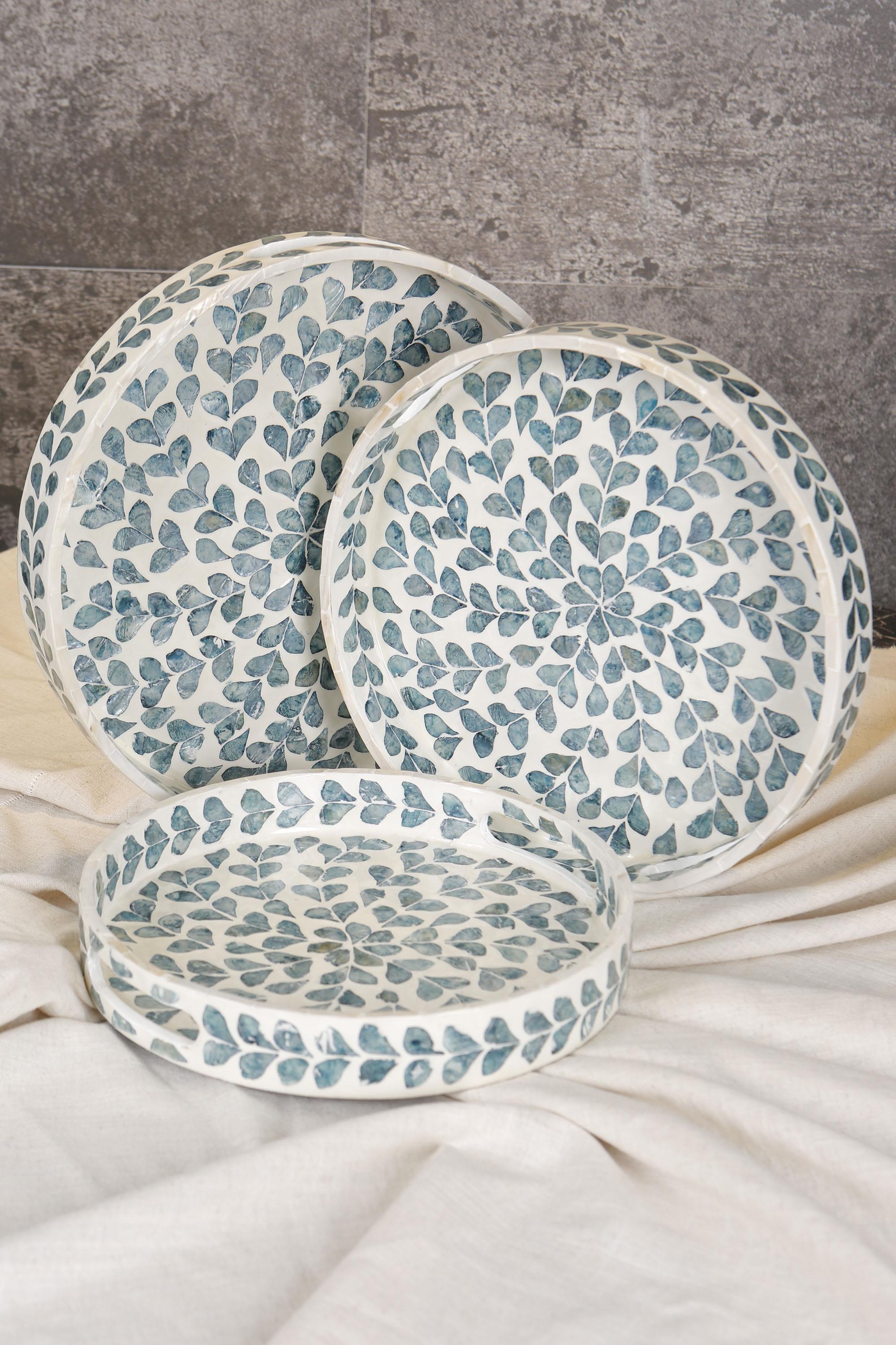 Metpoint Sedefli 3'lü İndigo Mavi Detaylı Tepsi Seti (SVR-HP61874)