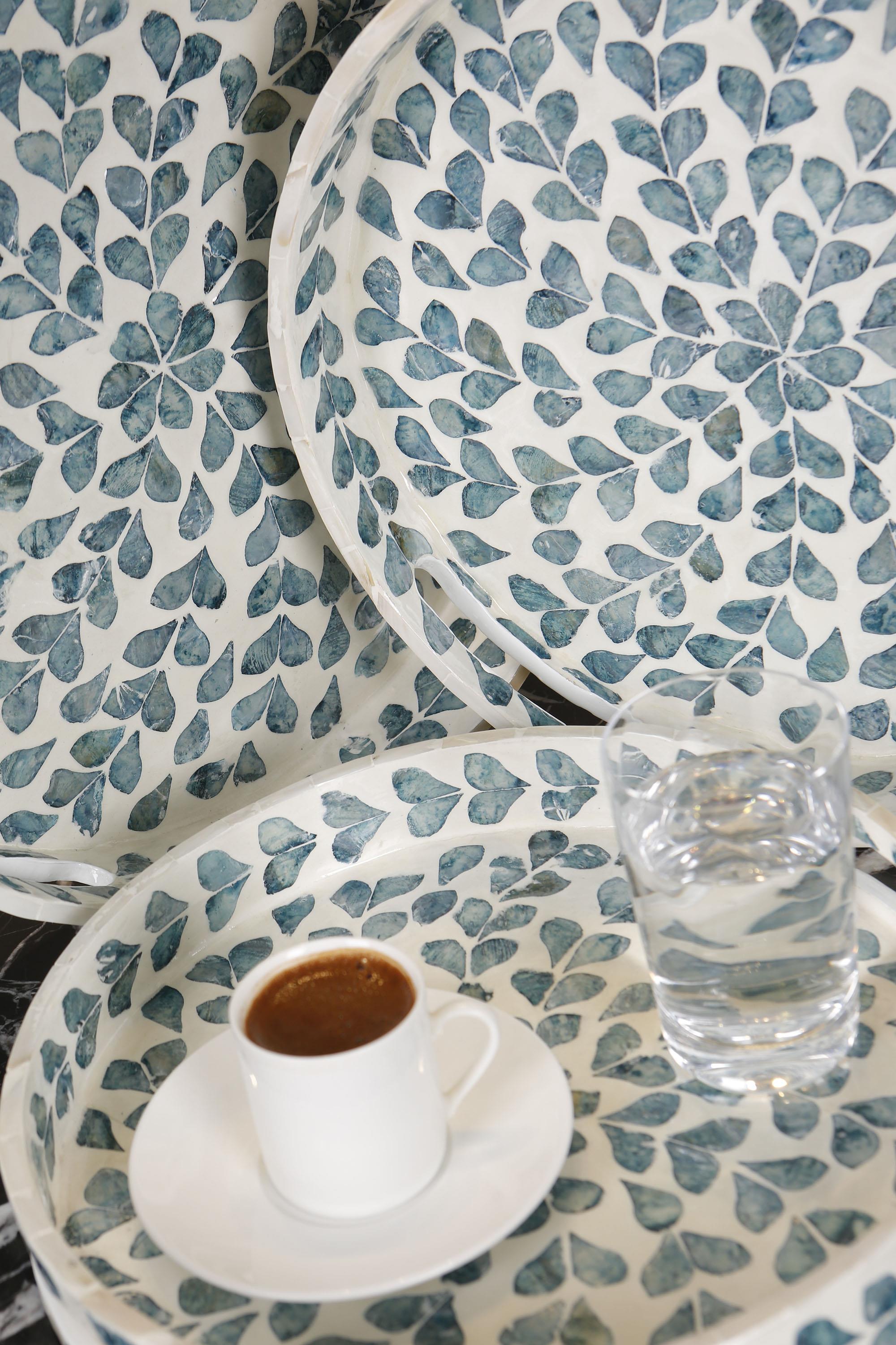 Metpoint Sedefli 3'lü İndigo Mavi Detaylı Tepsi Seti