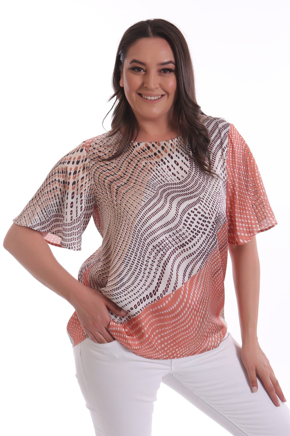 Nokta Desenli Volan Kol Kiremit Bluz (221283)