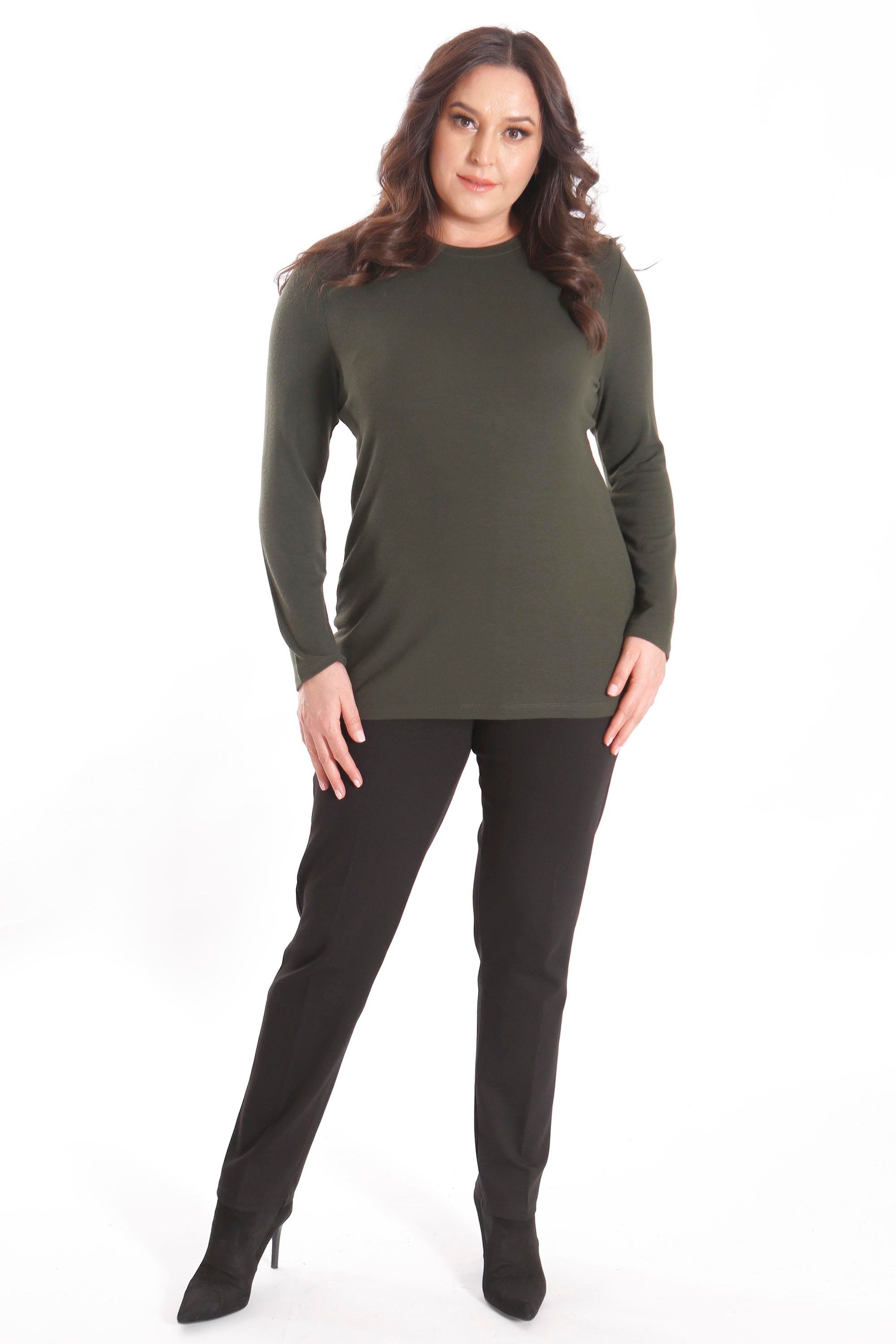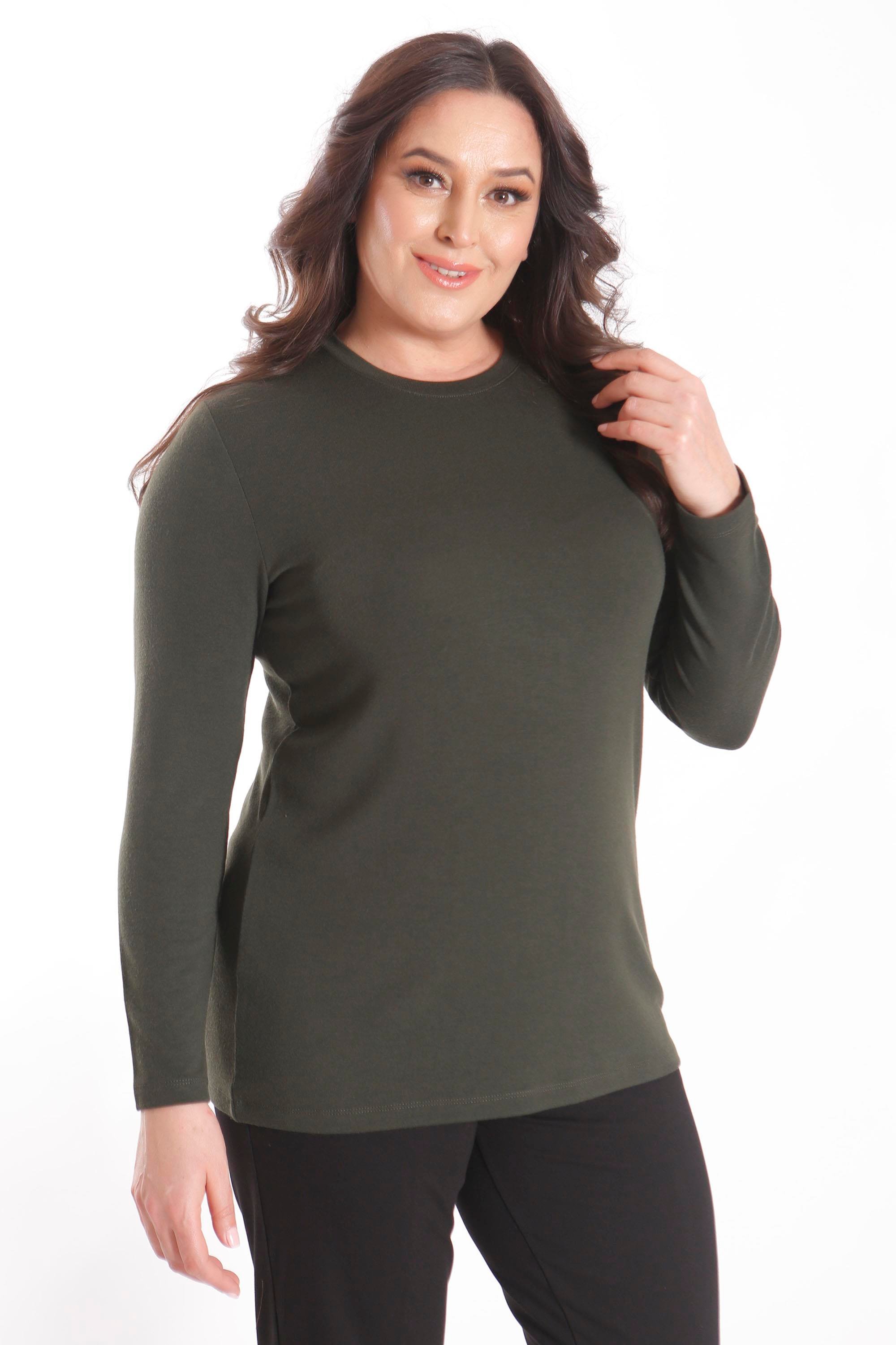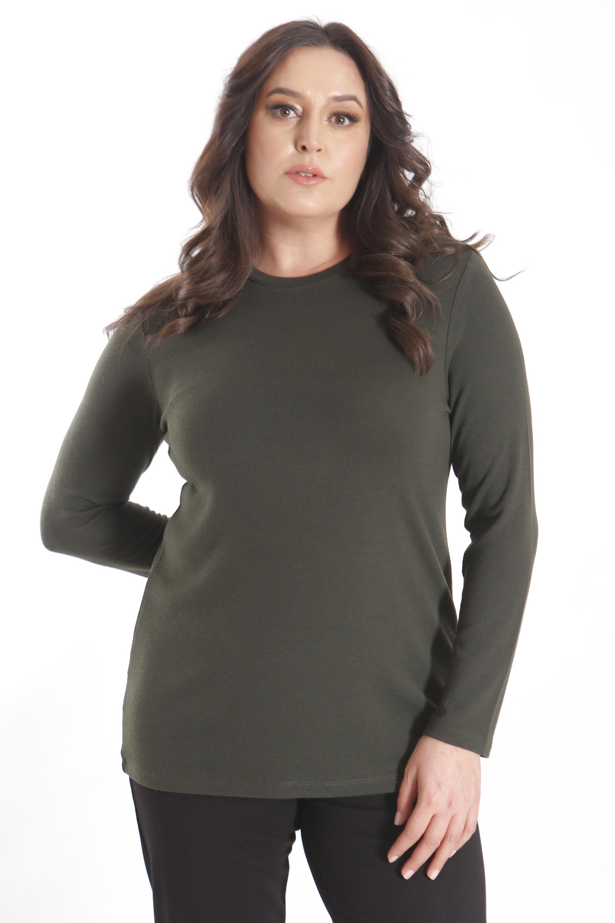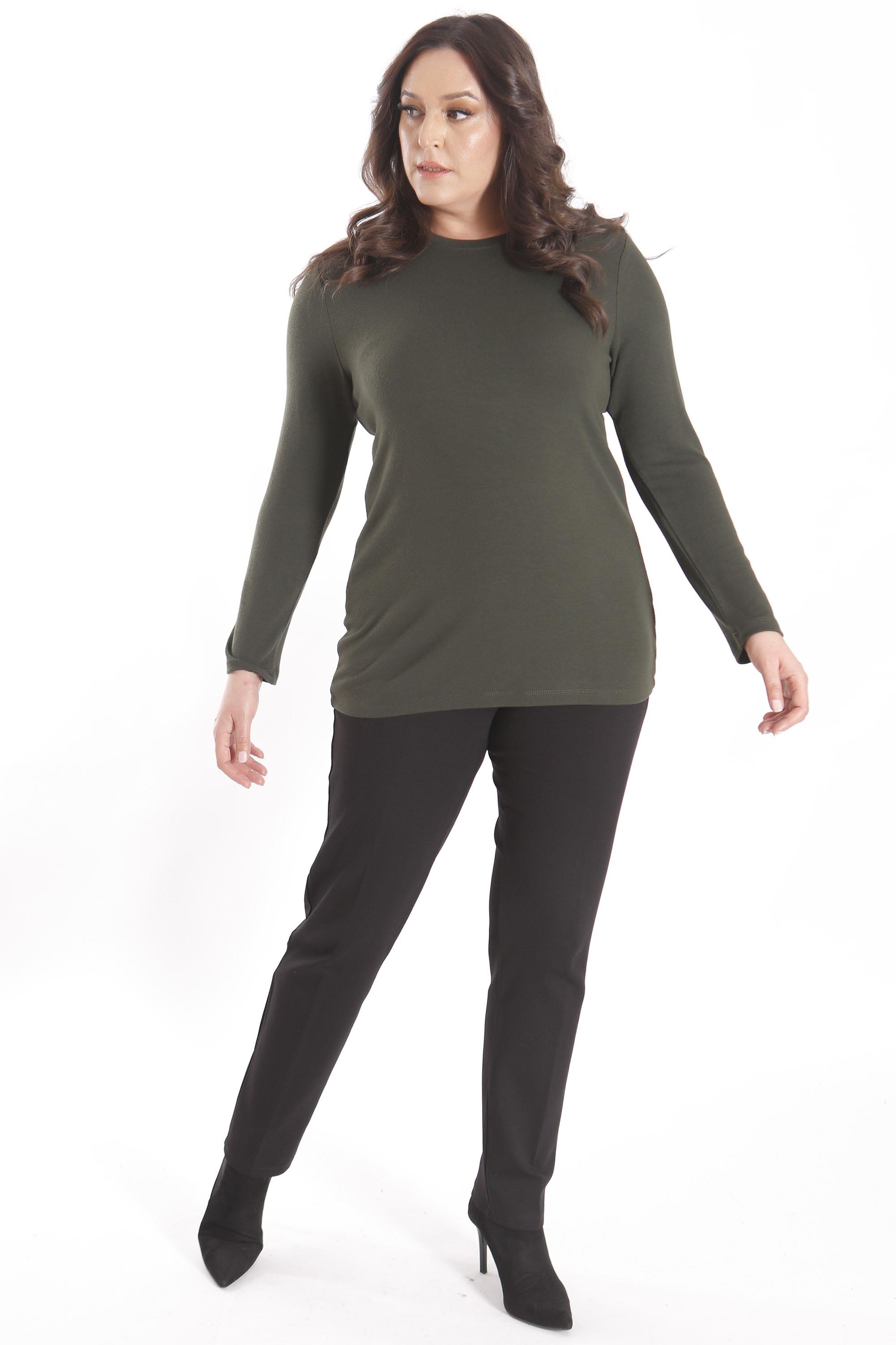 Trend42plus büyük Beden Basic Bisiklet Yaka Haki Bluz