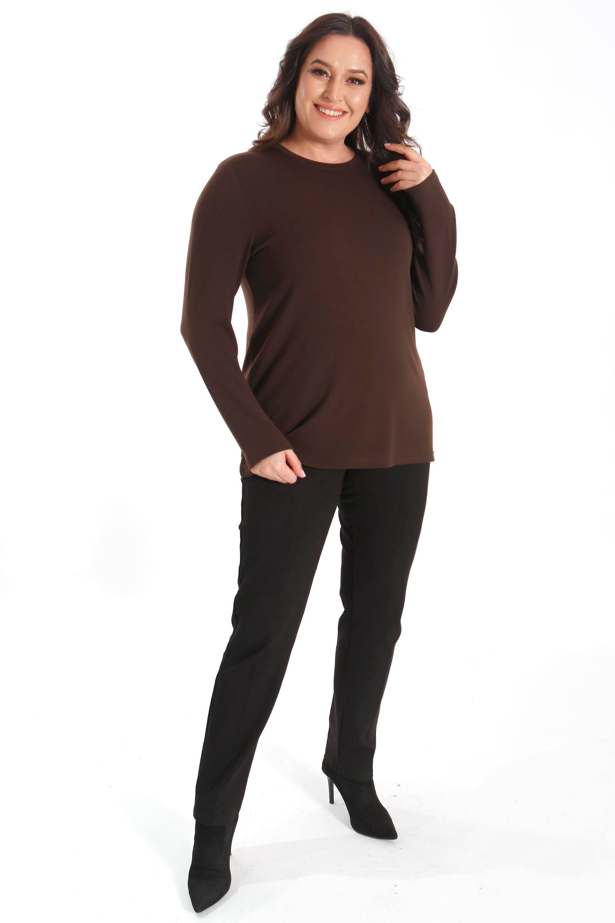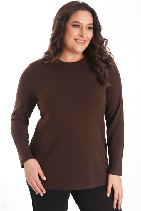 Trend42plus büyük Beden Basic Bisiklet Yaka Kahverengi Bluz (20709)