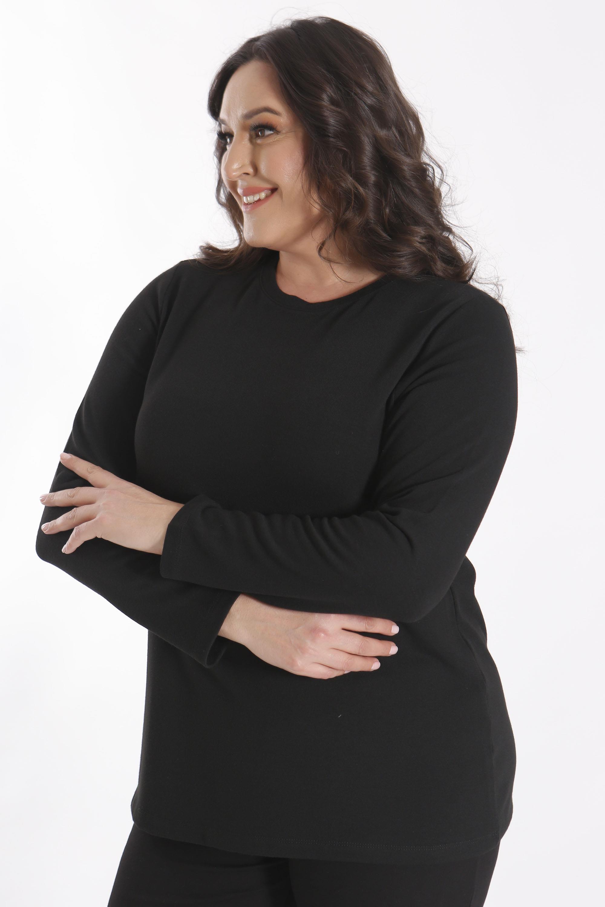 Trend42plus büyük Beden Basic Bisiklet Yaka Siyah Bluz (20709)
