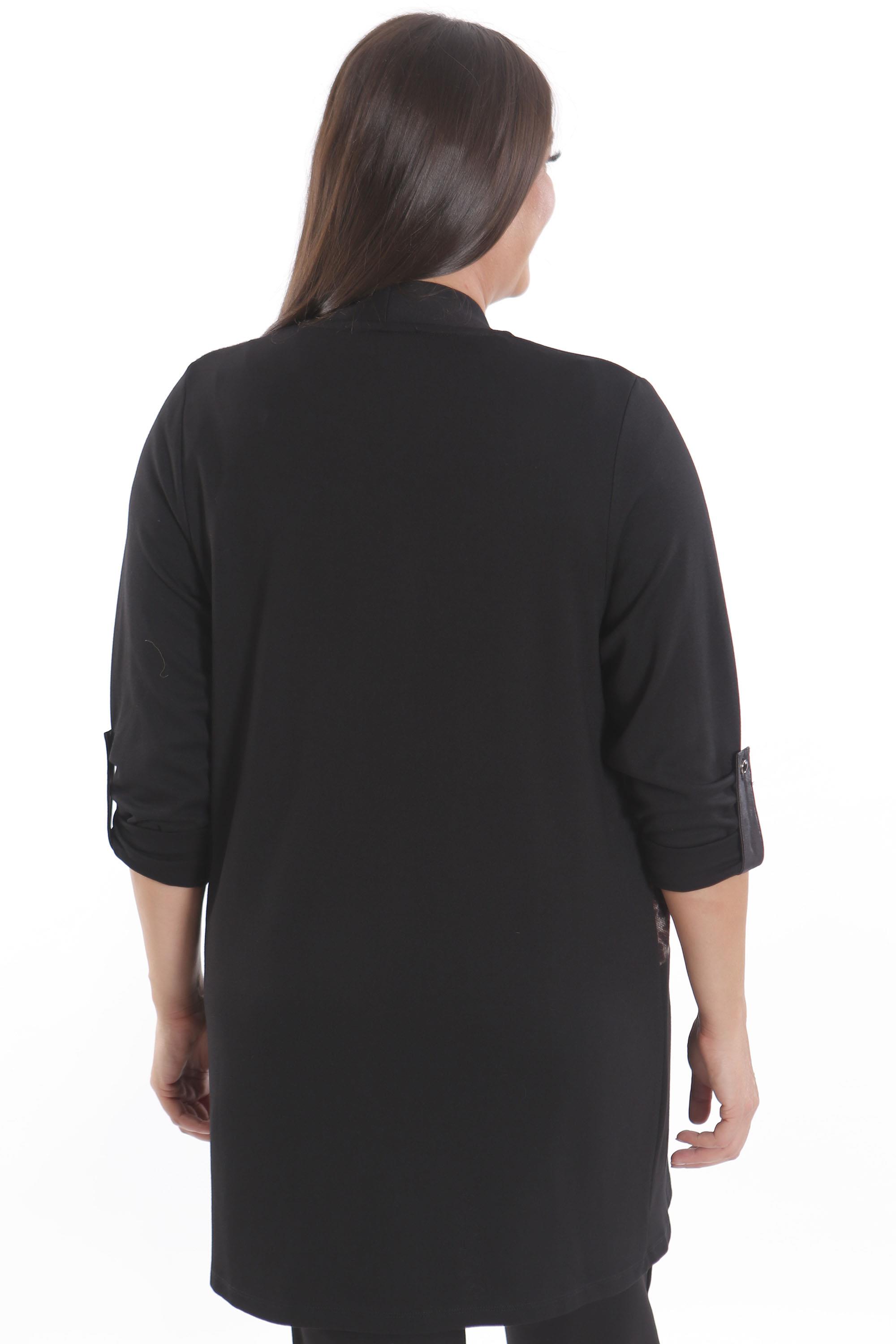 Trend42plus Büyük Beden Leopar Desenli Siyah Hırka (30110)