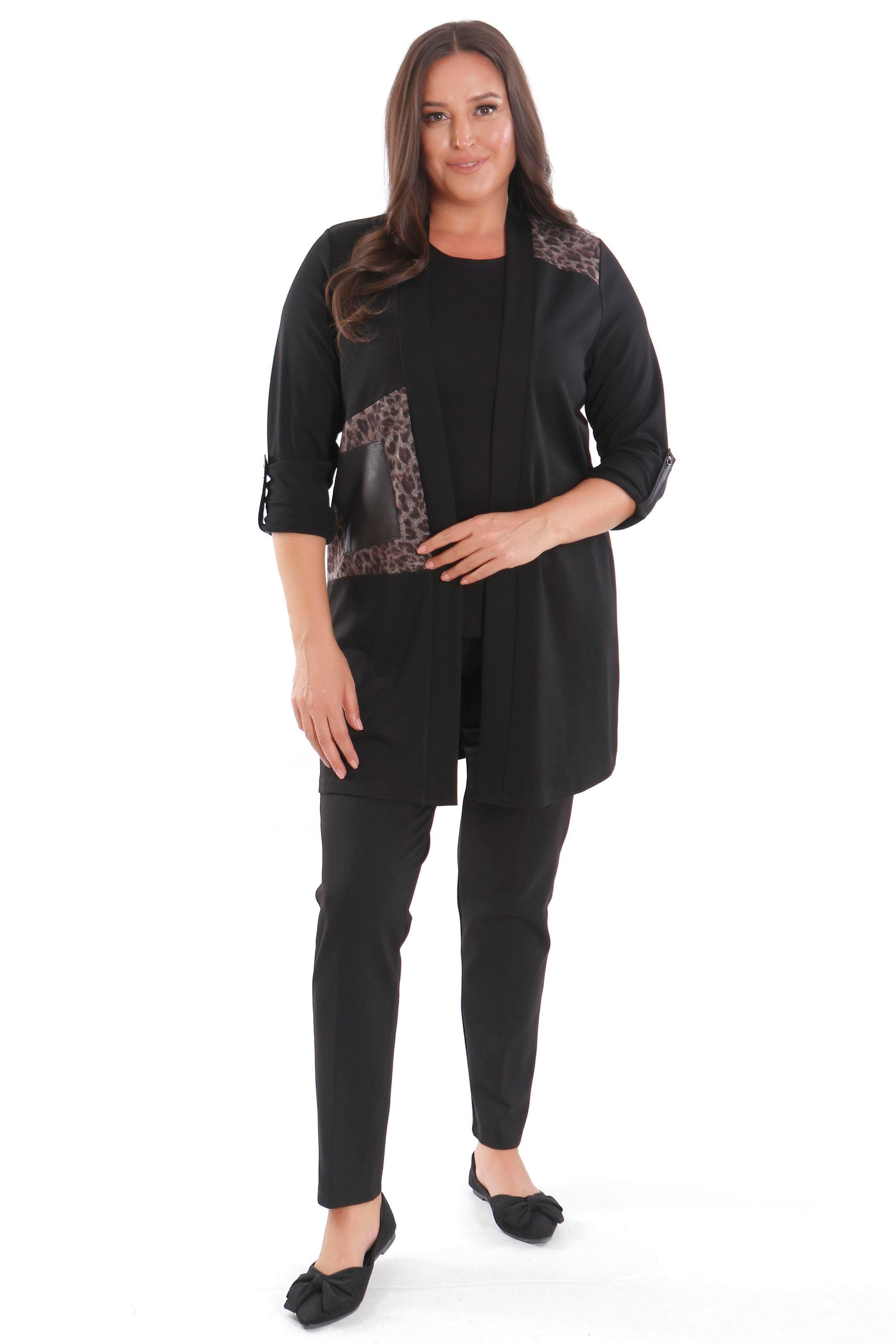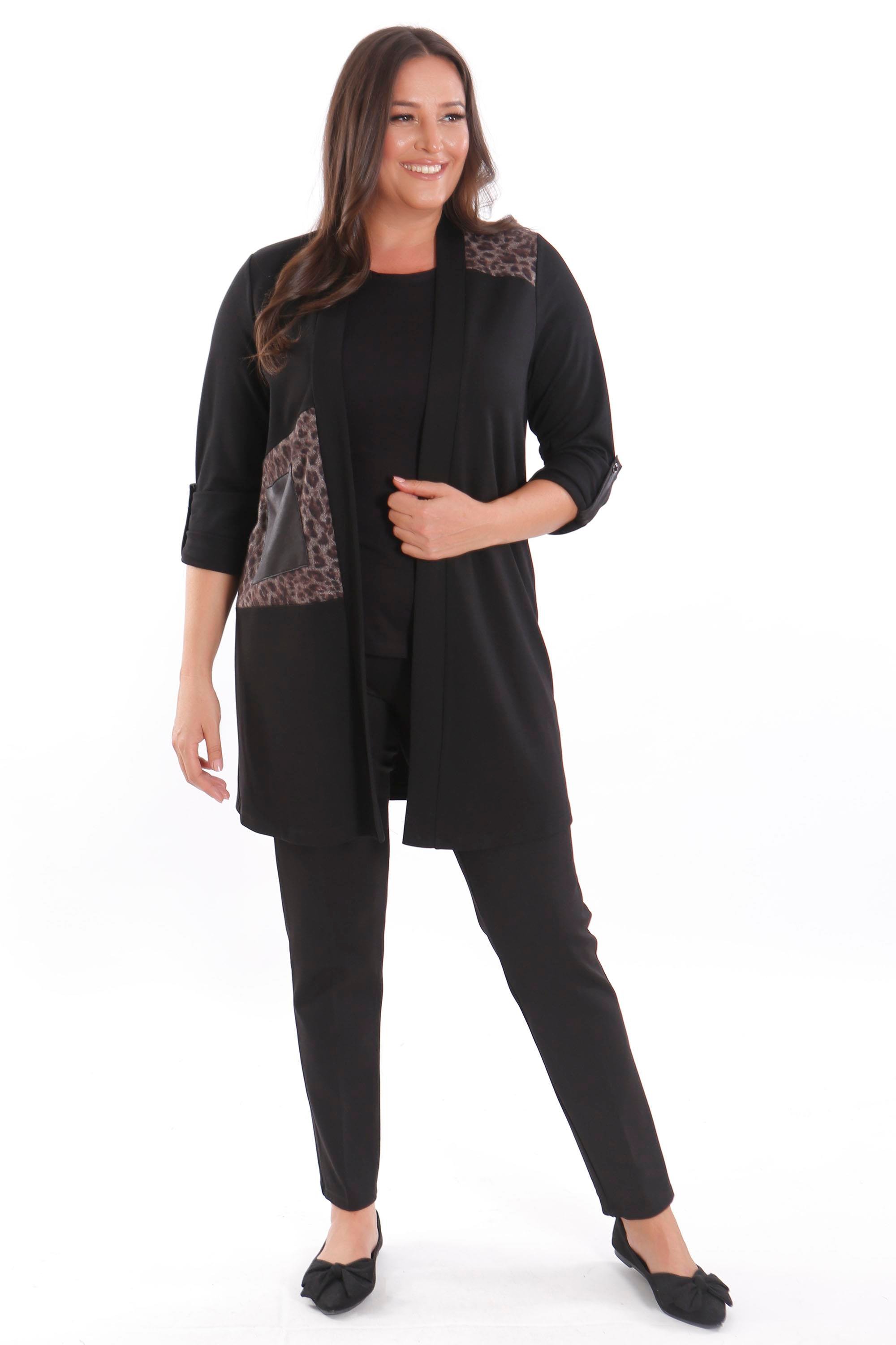 Trend42plus Büyük Beden Leopar Desenli Siyah Hırka