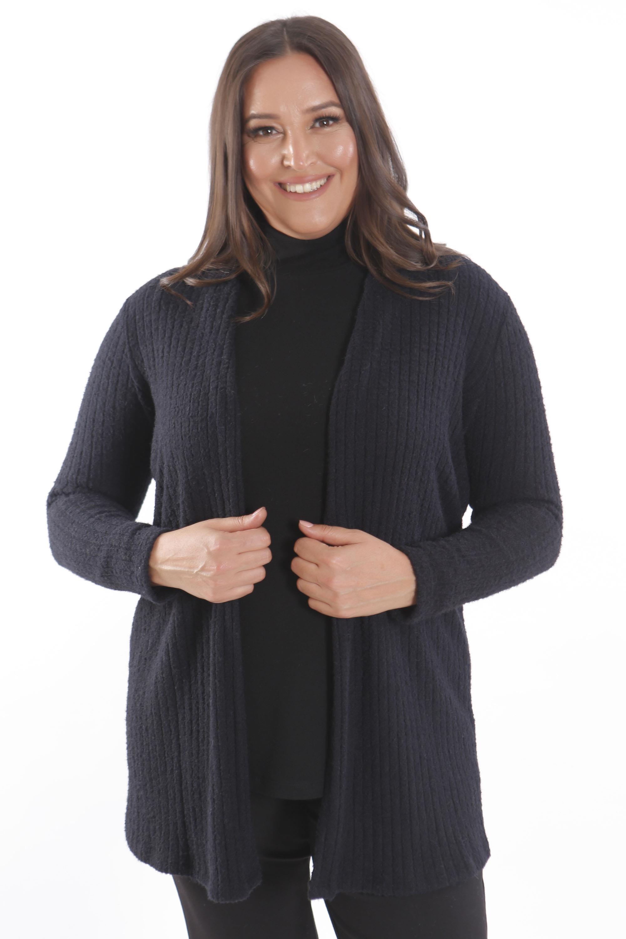 Trend42plus Büyük Beden Siyah Kendinden Kıvrımlı Yumoş Hırka