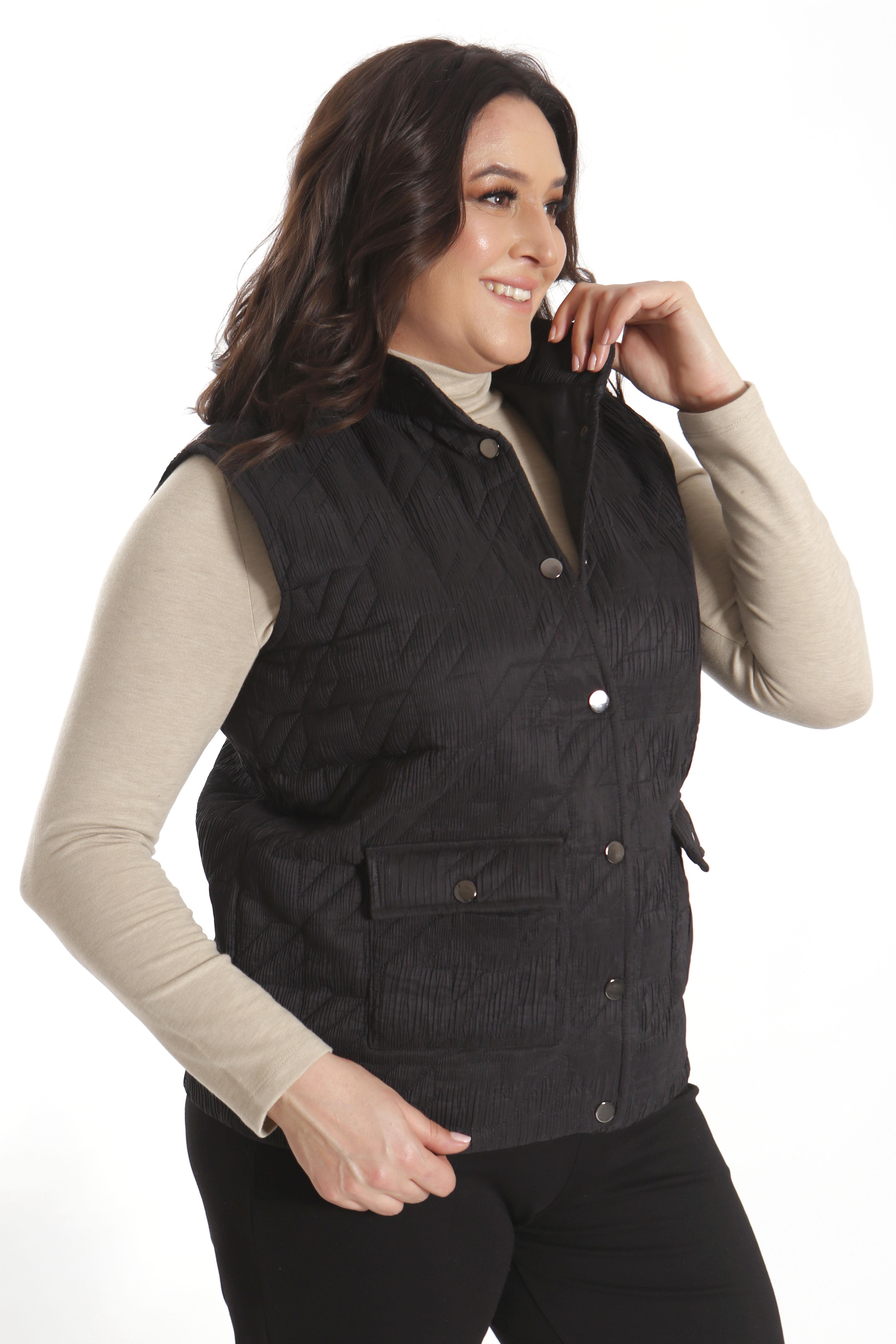 Trend42plus Büyük Çıt Çıt Düğmeli Kapitone Siyah Yelek (45056)